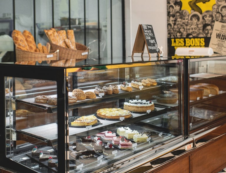 Ofrecemos una variedad de panes artesanales, pasteles y otras delicias francesas recién horneadas.